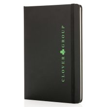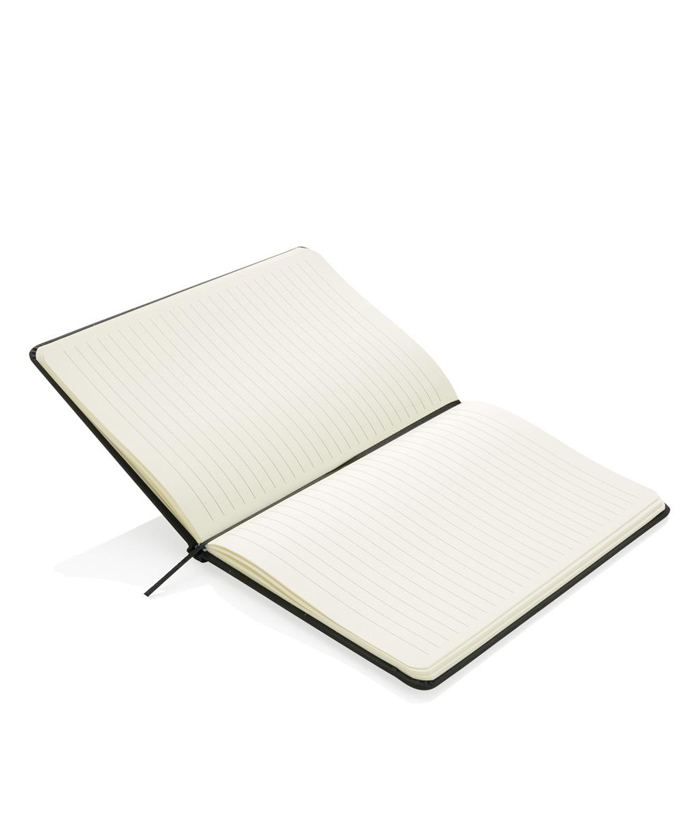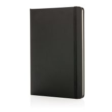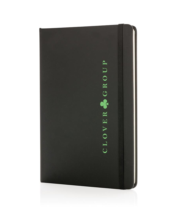 Бележник формат А5 с твърда корицa с черен ластик и заоблени ръбове.