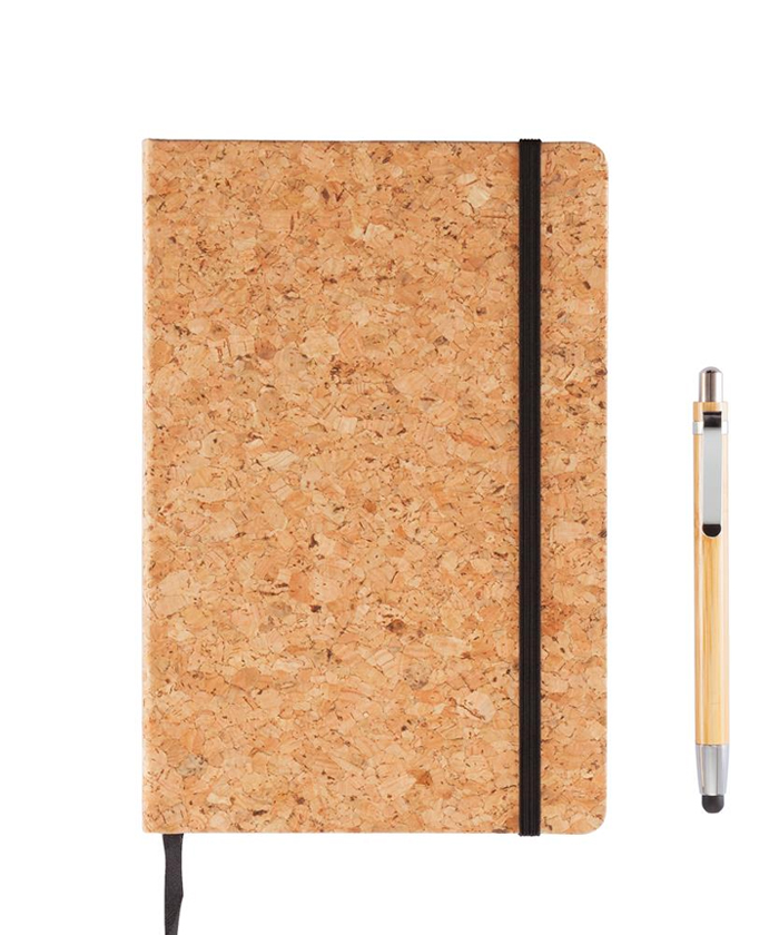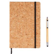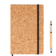 Комплект от еко бележник с бамбукова химикалка Cork&Bamboo от серията Eco Line. Бележникът е с корица от корк в натурален бежов цвят и тяло на редове с ластик и отбелезалка. Практичност в ежедневието в унисон с природата.