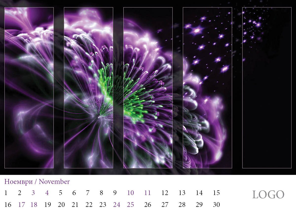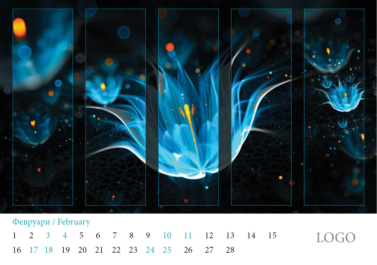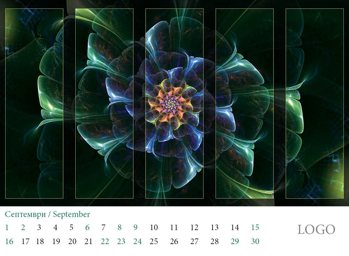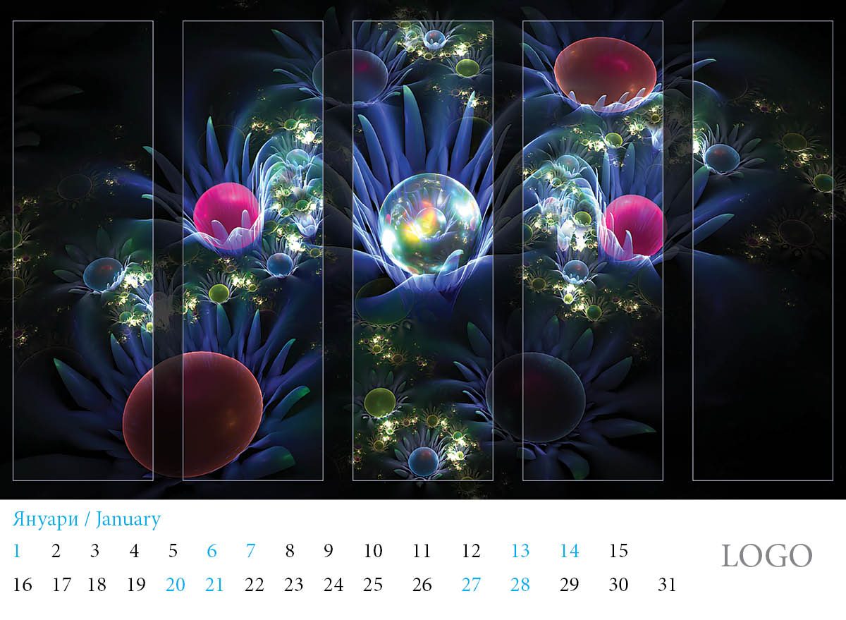 Многолистов календар „Абстракции 2019“ с красиви абстракни дизайни и лого на всяка страница