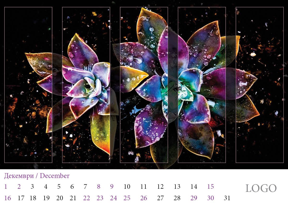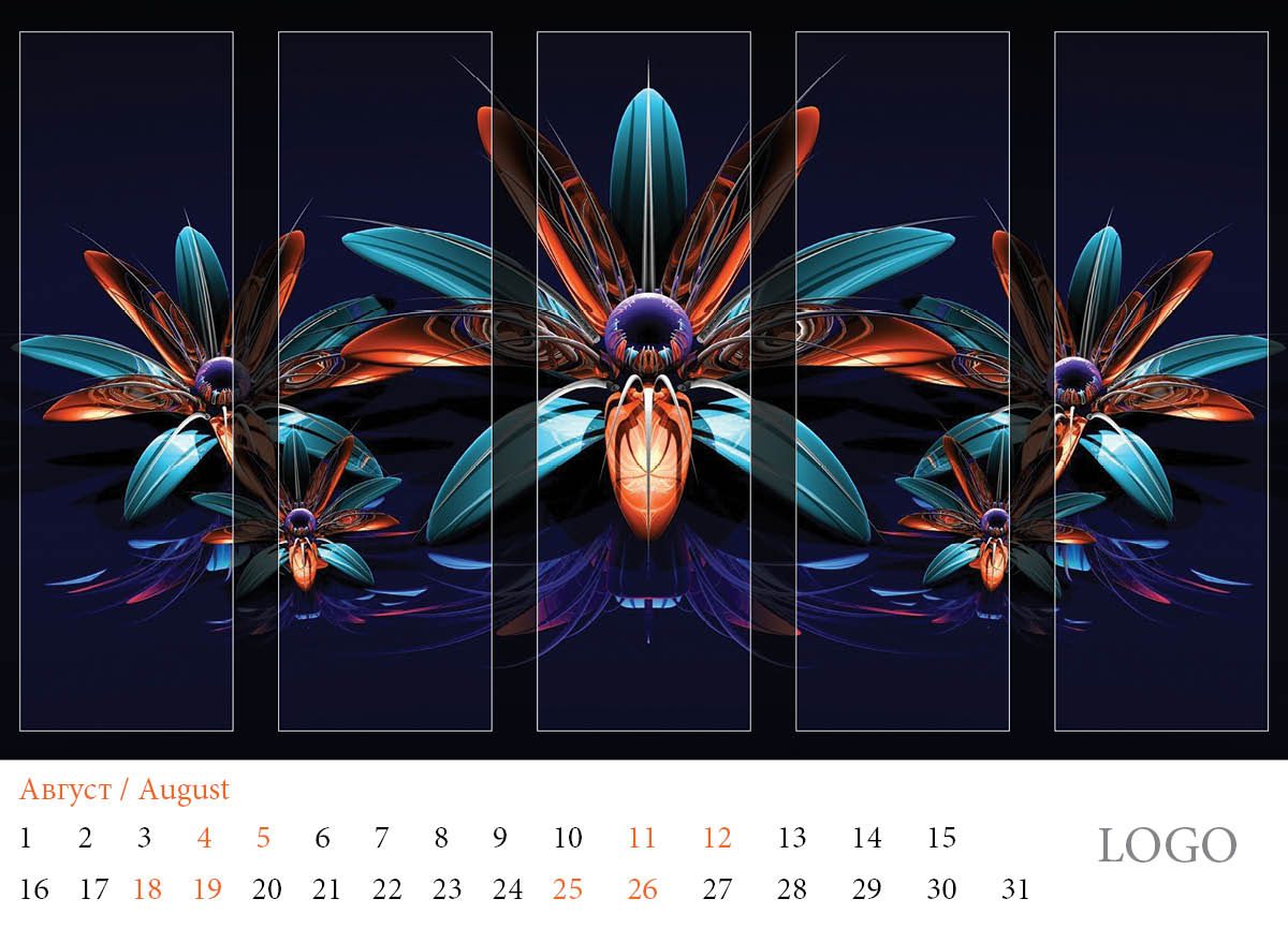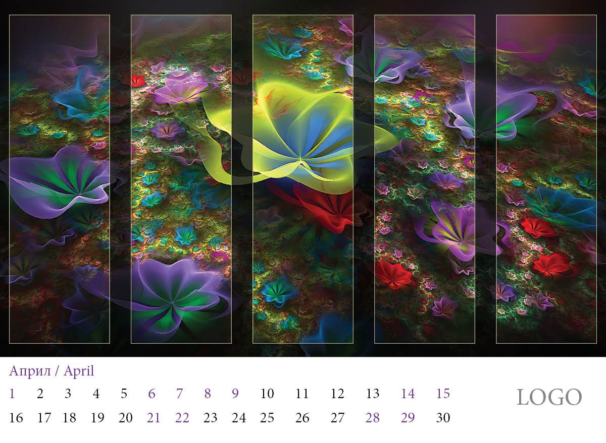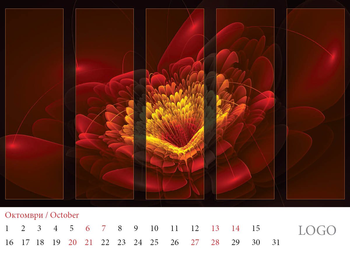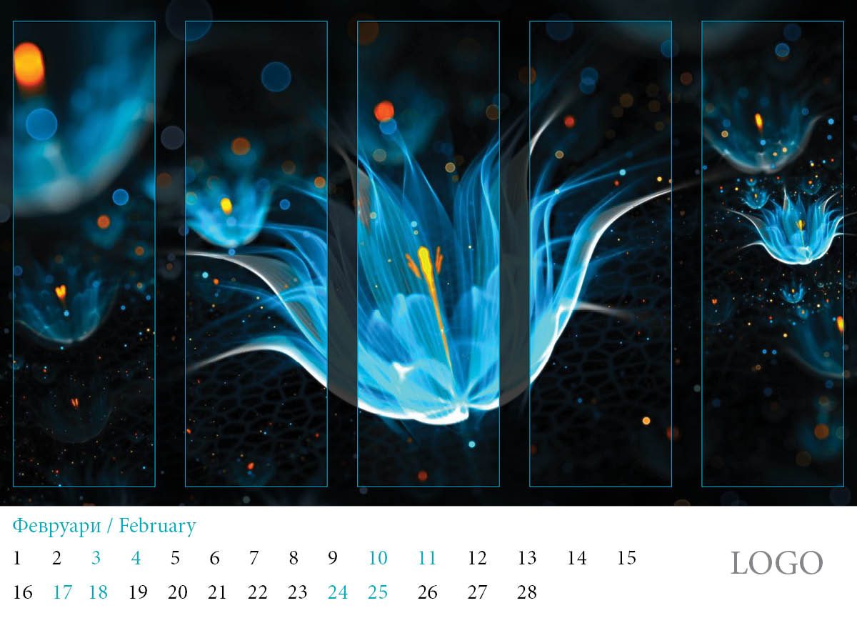 Многолистов календар „Абстракции 2019“ с красиви абстракни дизайни и лого на всяка страница