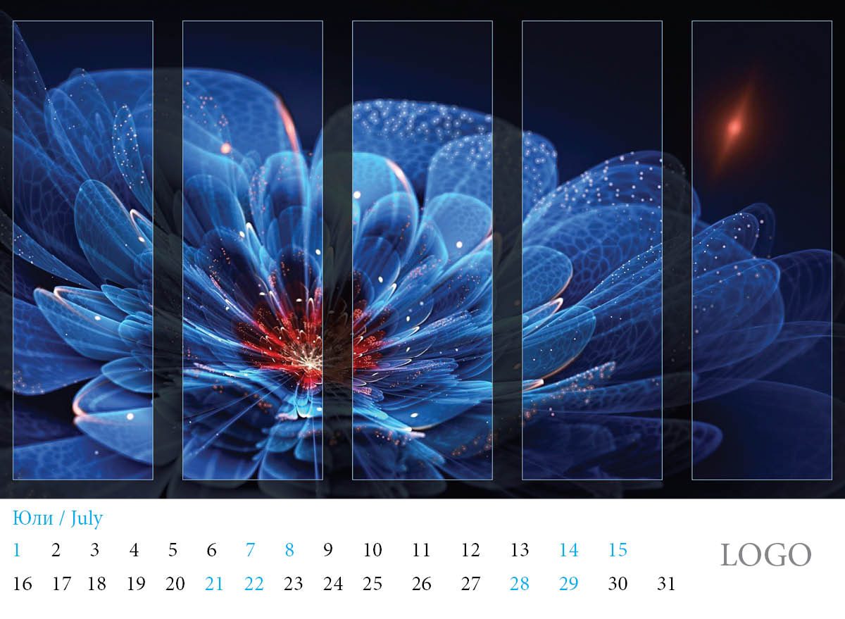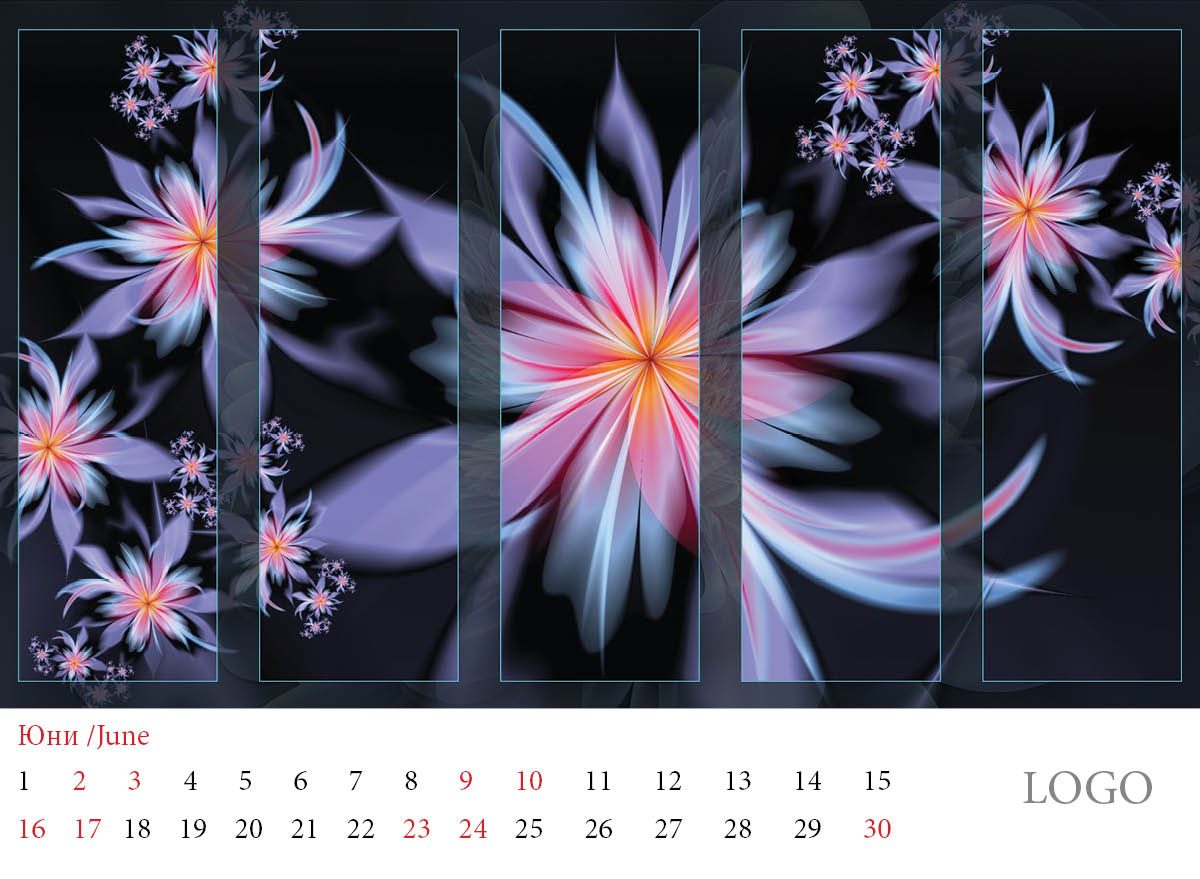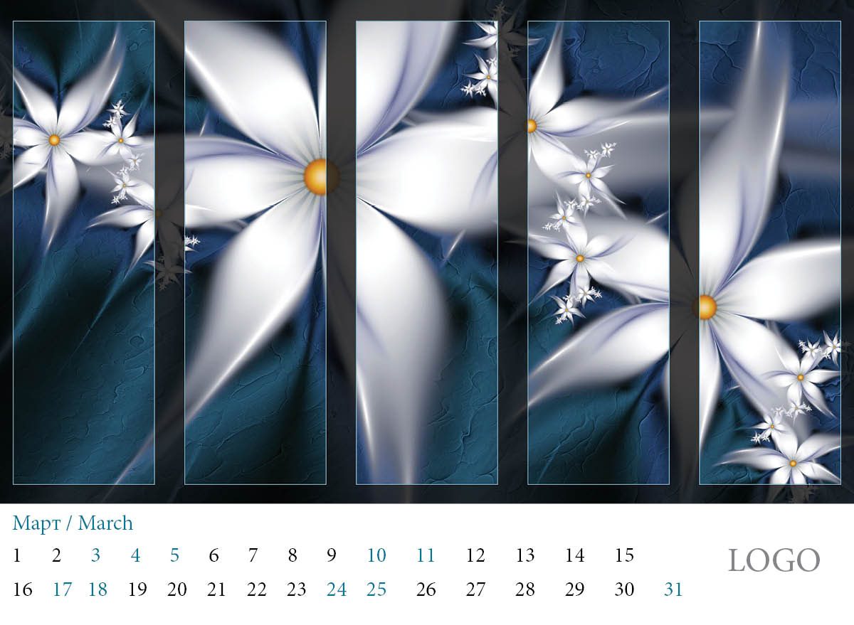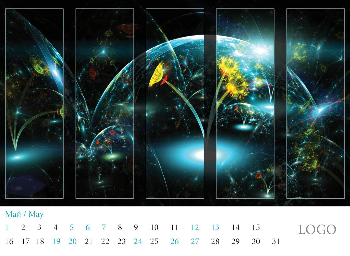 Многолистов календар „Абстракции 2019“ с красиви абстракни дизайни и лого на всяка страница