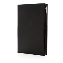 Стилен тефтер Swiss Peak A5 PU в черно с удобен преден джоб с цип.