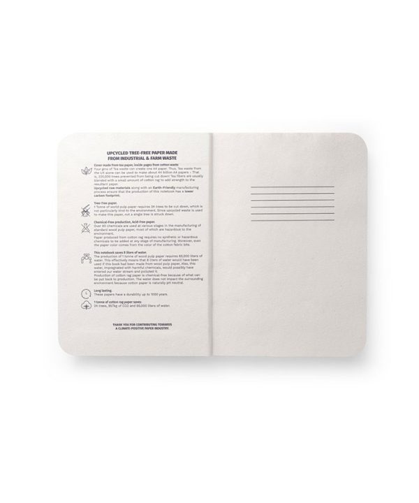 В процеса на производство на този бележник не са генерирани отпадъци, нито са използвани химикали или дървета.